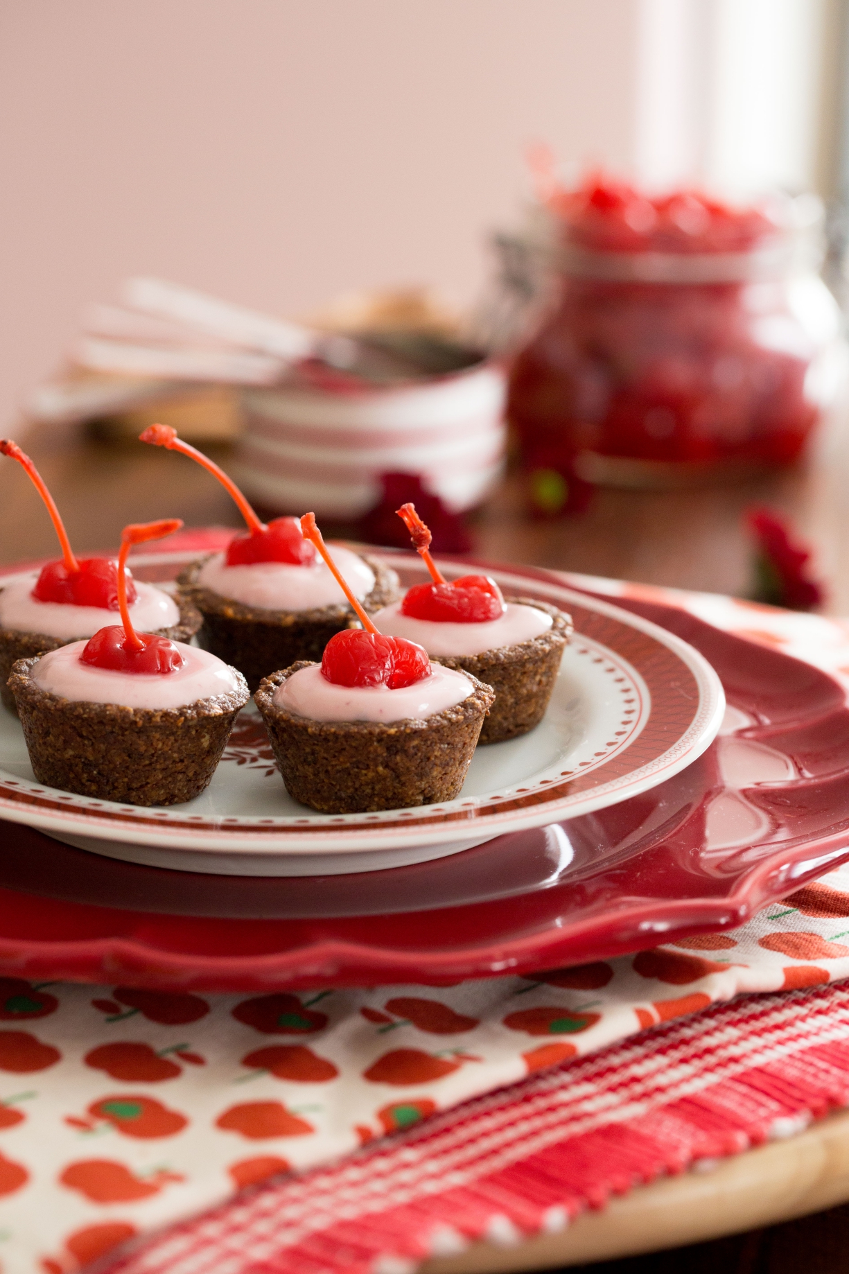 As cerejas não poderiam faltar por aqui! Frescas ou em calda, trazem um ar todo especial a qualquer doce. Apenas banhá-las num chocolate já é um charme na hora de servir aos convidados. Que tal?