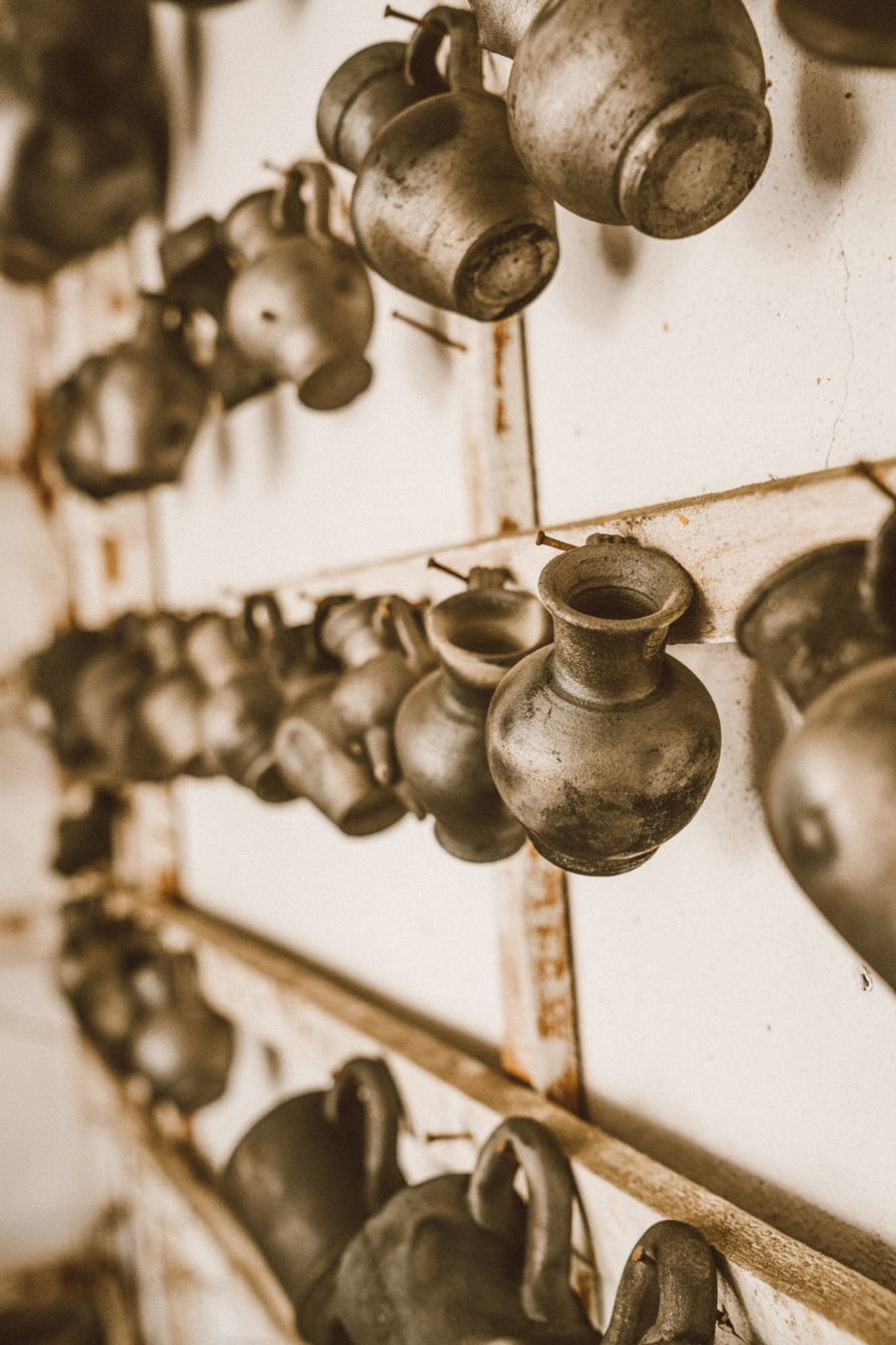 Tanto o barro como também o processo de montagem das peças são únicos e especiais. Os itens são todos cozidos em um forno à céu aberto, que nada mais é do que um buraco na terra preenchido com lenhas dos montes. O processo é todo natural e os componentes químicos do barro também acabam evaporando, já que a temperatura é muito alta e o forno não fica aberto.